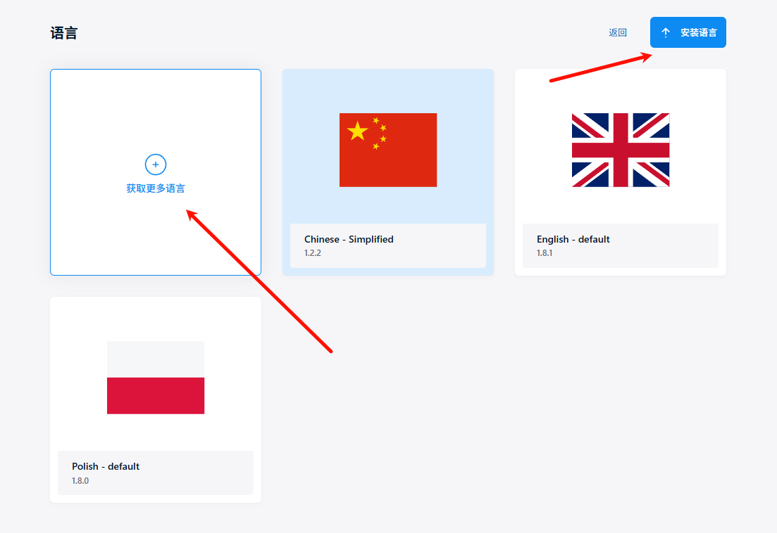 打开语言界面后点击获取更多语言